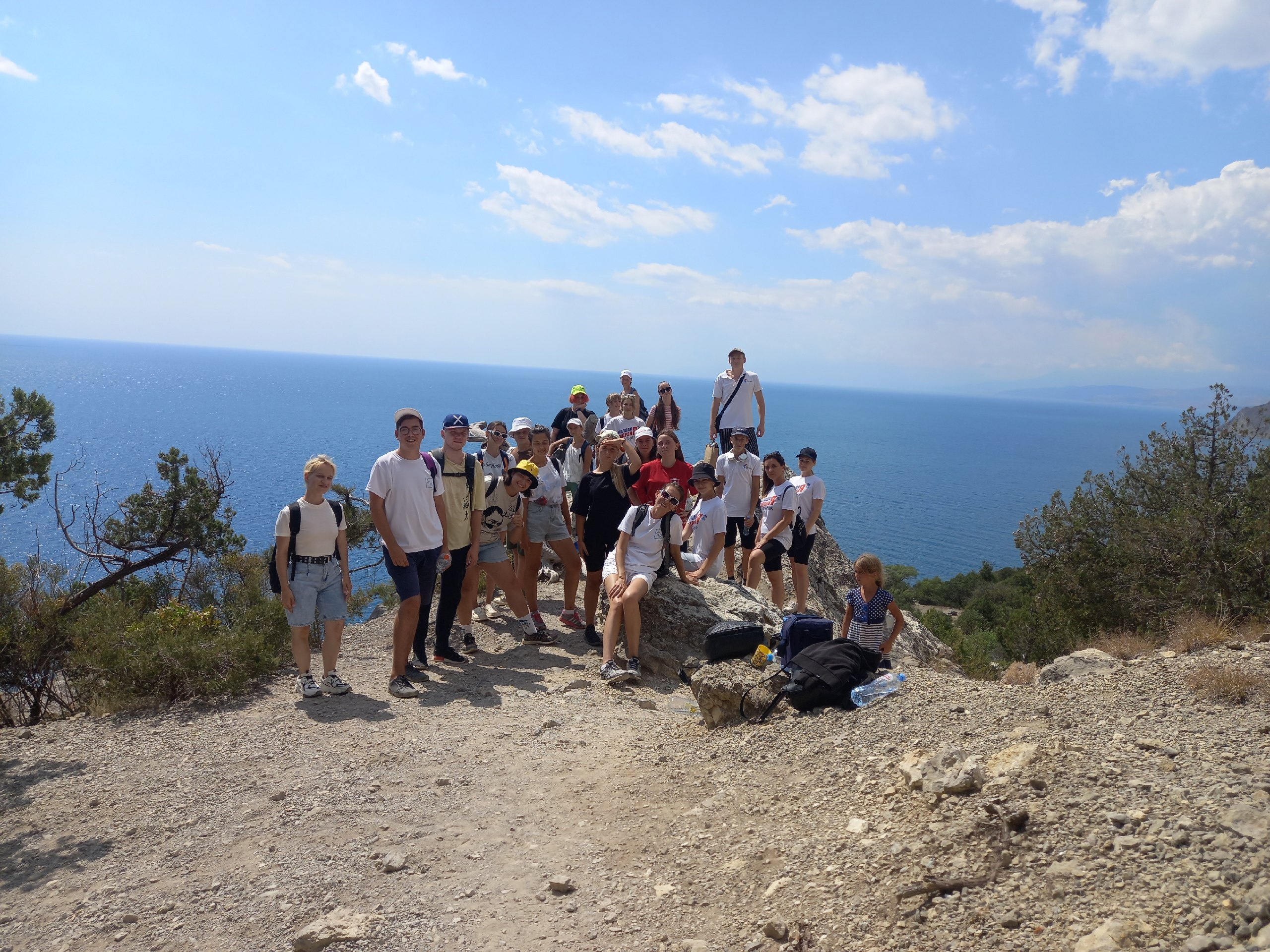 Ребята прошли по маршруту: Караул Оба (п. Весёлый, Судакский округ) — Кресло Галицына — Мыс Капчик — Тропа Галицына — Новый Свет На горе молодежь подняла российский триколор в знак своей любви к стране
